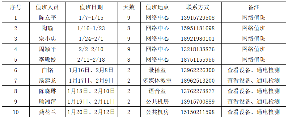 3、值班时间:上午9:00-11:30,下午2:00-5:00